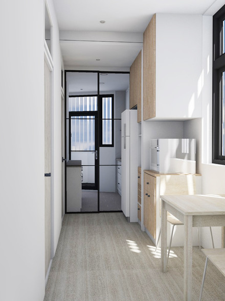 大都市中的老公寓各式各樣,狹長形的空間並不好規劃,設計起來也蠻有趣的,麻雀雖小五臟俱全,在緊湊的空間節奏留有輕鬆舒適。